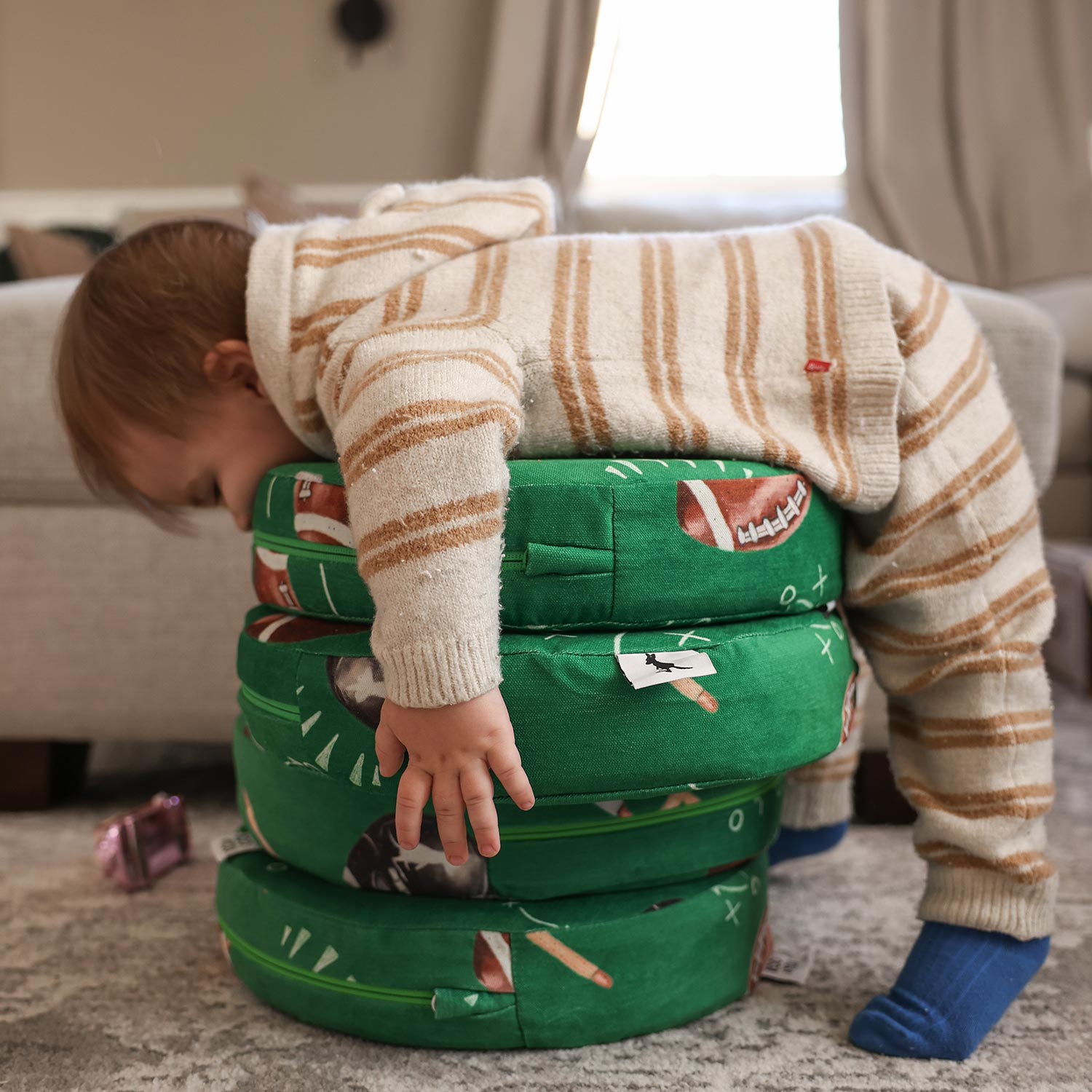 Versatility for Endless Play! Our 4 Pack of Stepping Stones brings a whole new layer of fun to your play couch builds. Lightweight and durable, these velveteen pieces are perfect for stacking, balancing, or hopping across like the floor is lava. From towering creations to imaginative adventures, they’re the ultimate add-on for any playroom.
