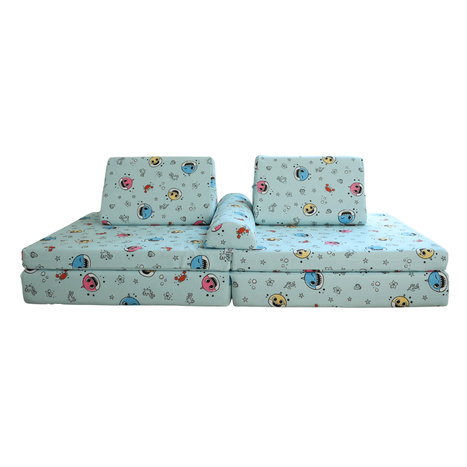 Baby Shark™ x Roo & You™ Play Couch with ocean-themed cover set.