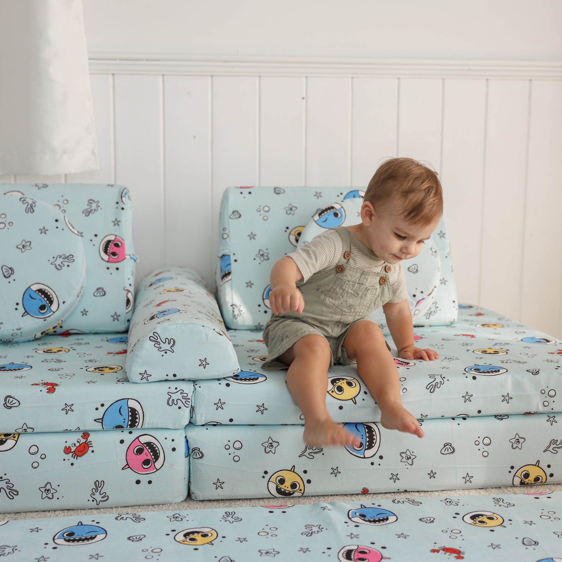 Baby Shark™ x Roo & You™ Play Couch with ocean-themed cover set.