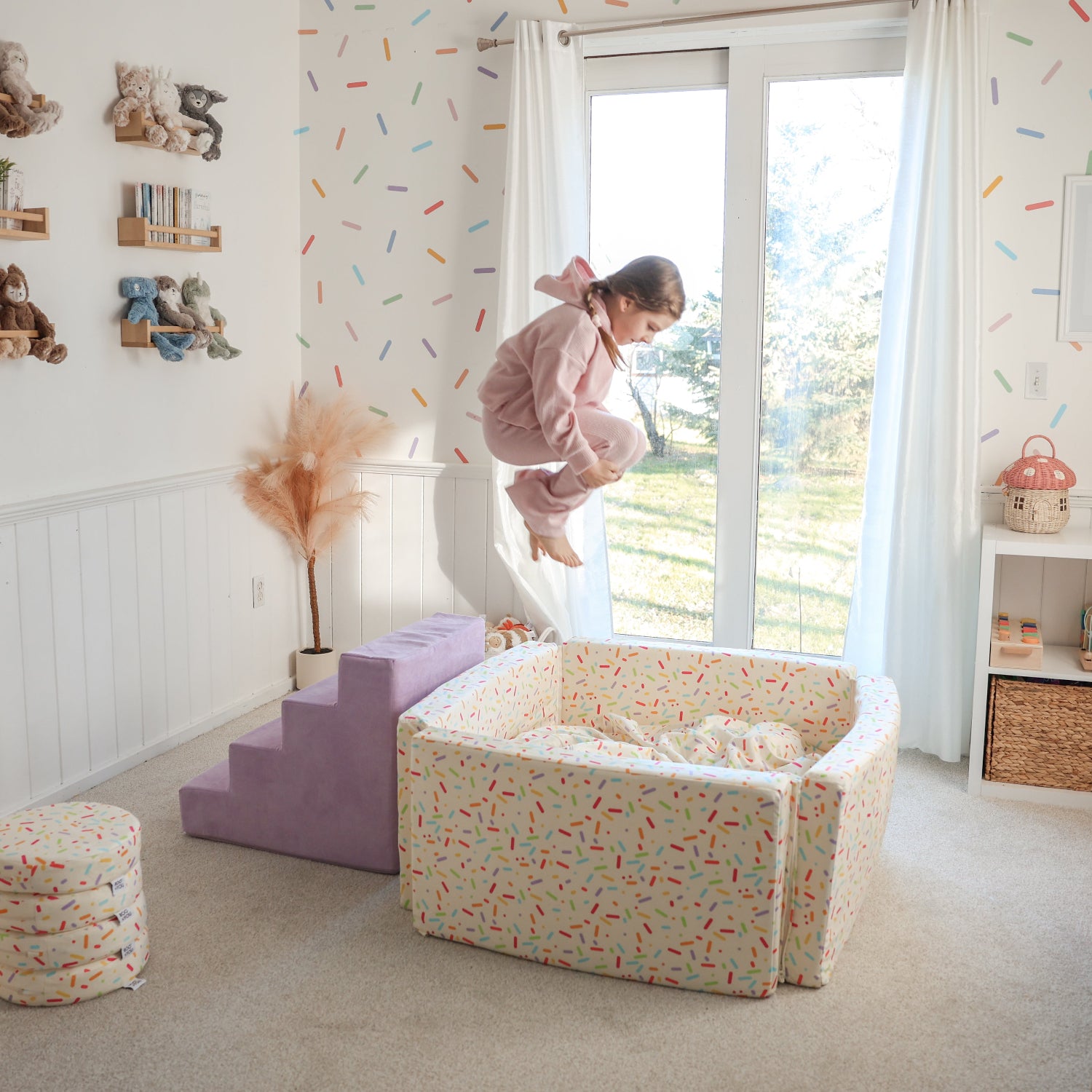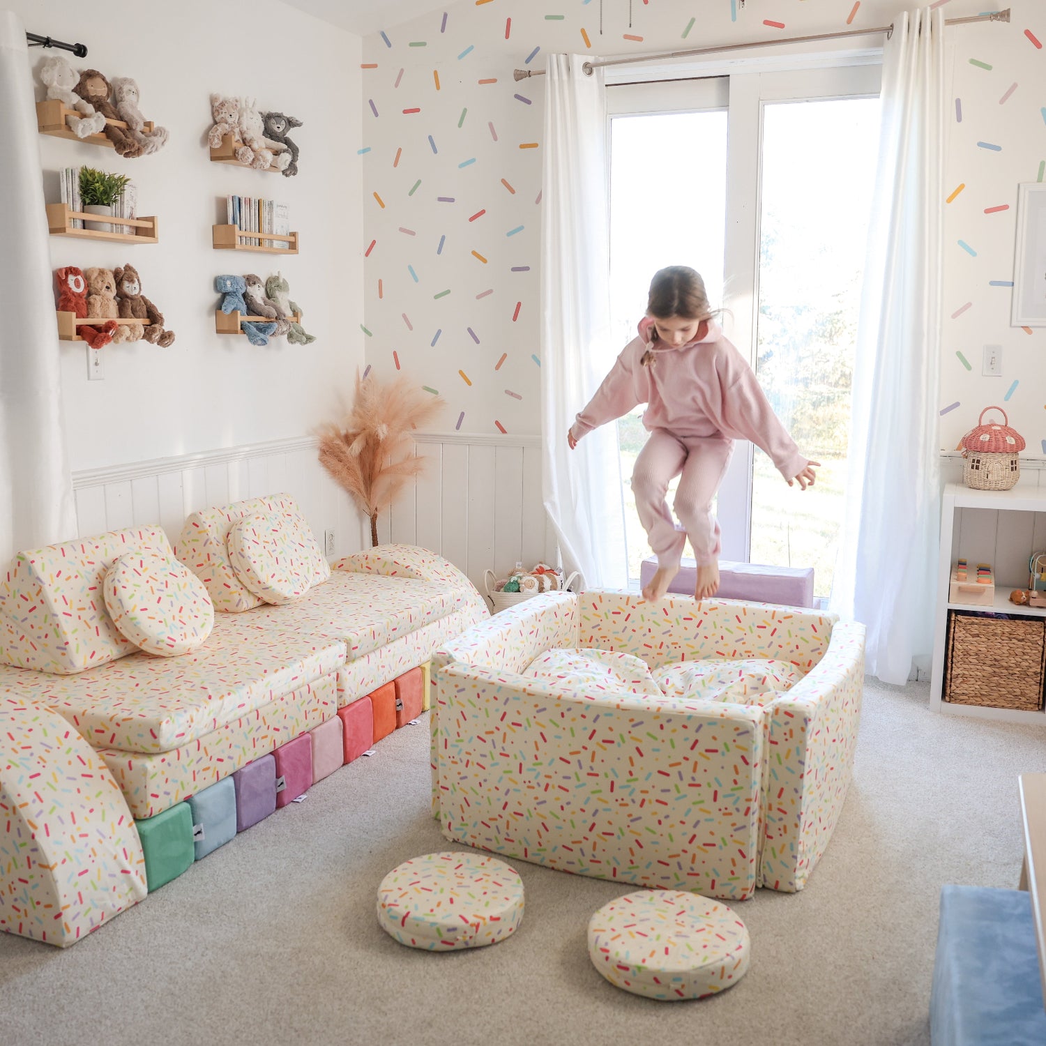 A sprinkle of fun for your playroom! Discover the Sprinkles Cover Set – soft velvet covers with a pop of print, made to sprinkle a little joy on your day.